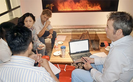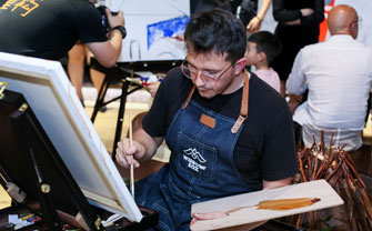 活動還特別設置了油畫創作環節,讓設計師們在繁忙的工作之余獲得身心的愉悅。李鷹先生、伊瓦諾先生和藝術家CAMILO CADENA先生、郁一一女士藝術家圍坐在圓形壁爐上認真創作,仿佛置身于戶外大自然中,獲得了靈感與創意的來源。